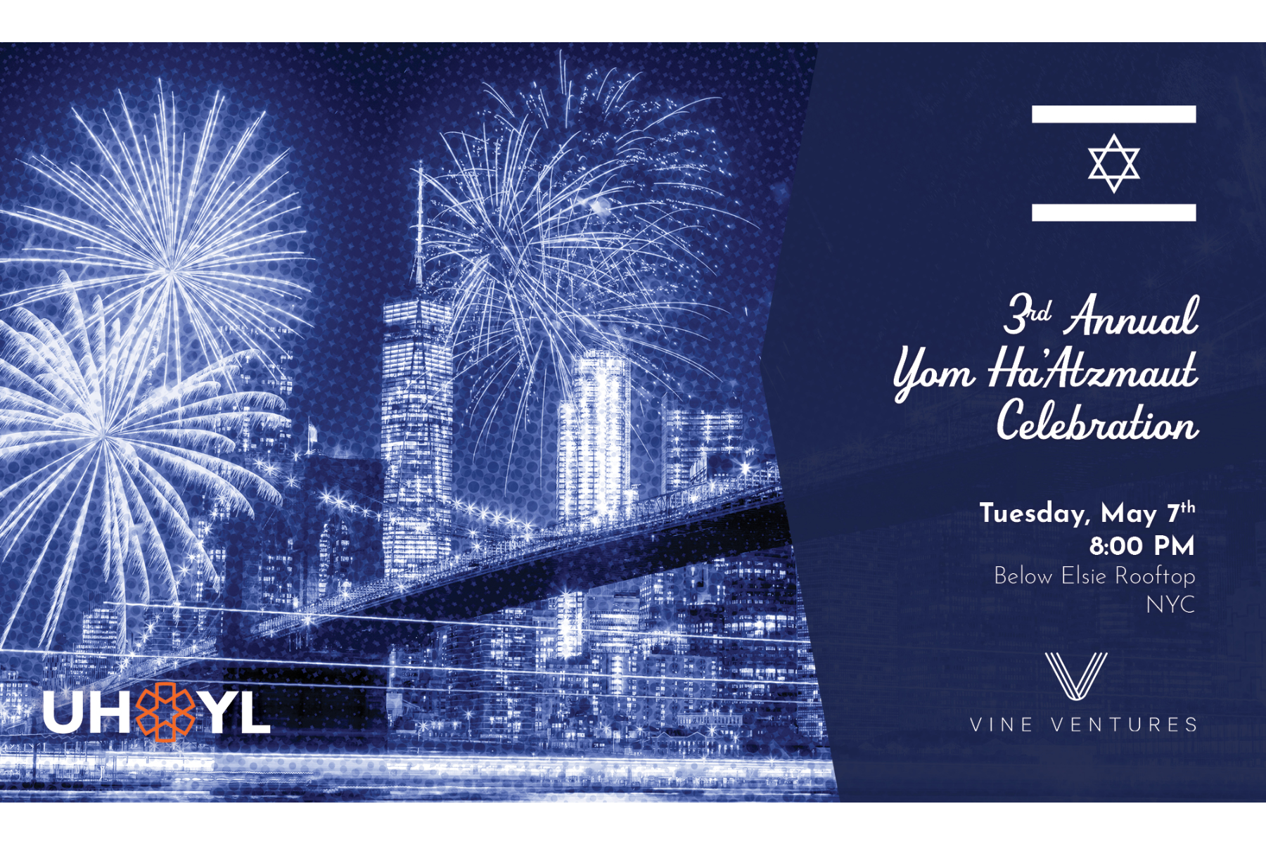 Please join UHYL and Vine Ventures for our 3rd Annual Yom HaAtzmaut Celebration benefiting United Hatzalah in honor of Israel's 76th Year of Independence.